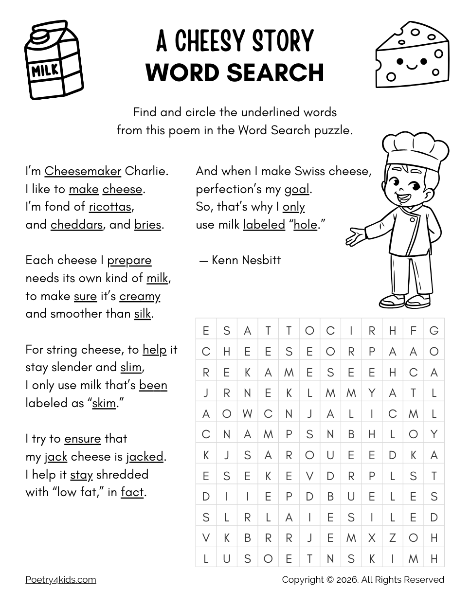 Today, while I was eating a slice of Swiss cheese and thinking about that not-so-successful experiment, my mind started wandering. I began imagining a cheesemaker who’s a very choosy about his ingredients, and before long, the idea for this poem popped into my head.